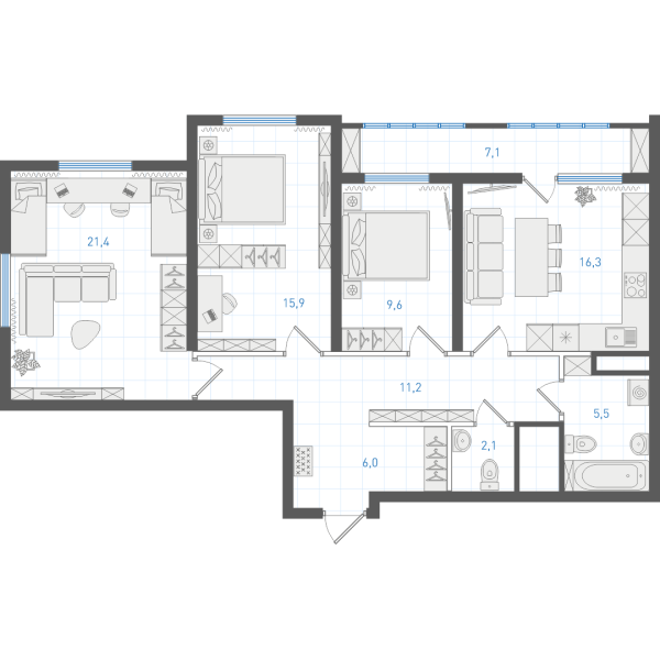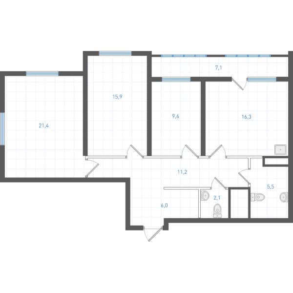 Площадь указана по проектным данным, после замеров БТИ она будет отличаться.