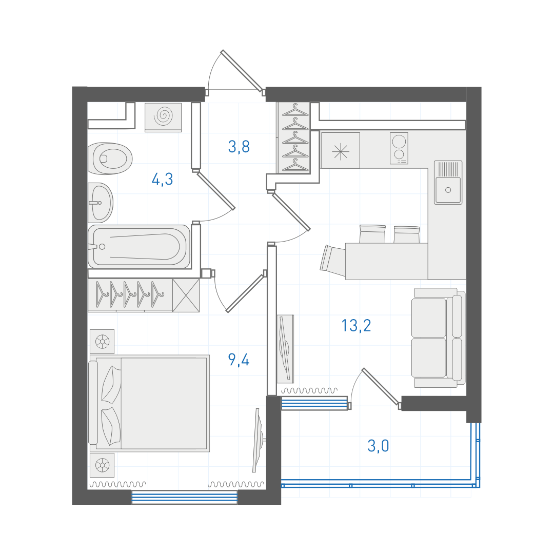 Планировка является типовой. Площади помещений, расположение и размеры венткоробов могут меняться в зависимости от этажа. Уточнение проектных данных в офисе продаж.