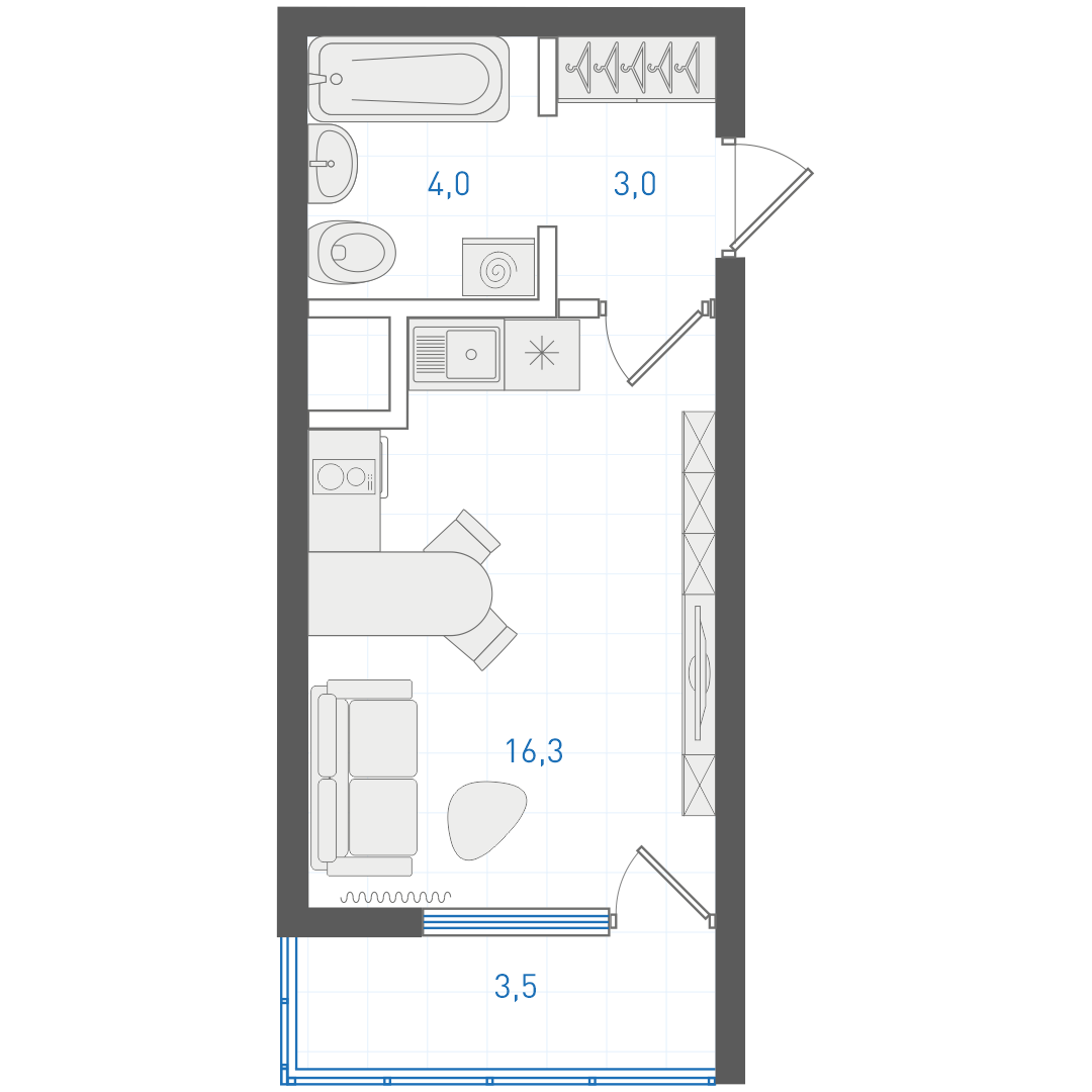 Планировка является типовой. Площади помещений, расположение и размеры венткоробов могут меняться в зависимости от этажа. Уточнение проектных данных в офисе продаж.