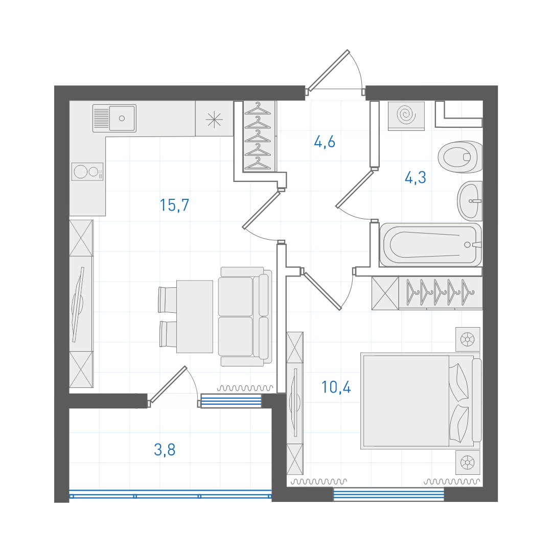 Планировка является типовой. Площади помещений, расположение и размеры венткоробов могут меняться в зависимости от этажа. Уточнение проектных данных в офисе продаж.