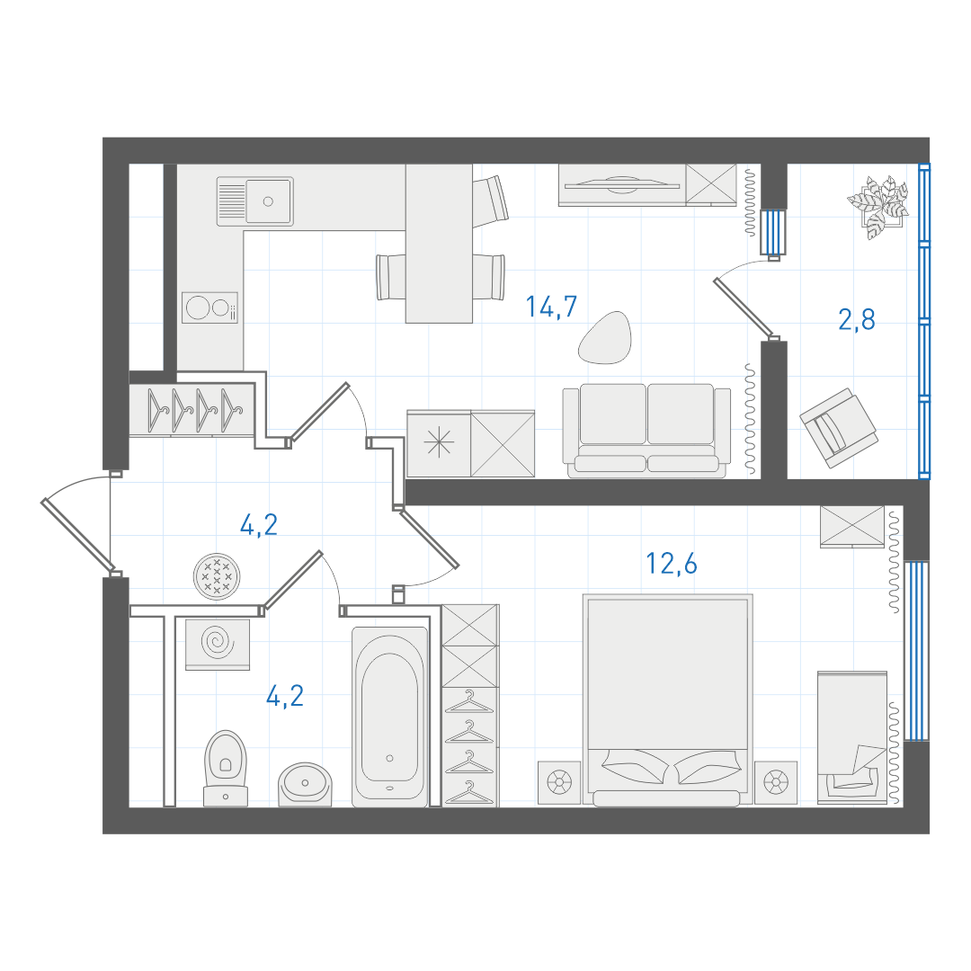 Планировка является типовой. Площади помещений, расположение и размеры венткоробов могут меняться в зависимости от этажа. Уточнение проектных данных в офисе продаж.