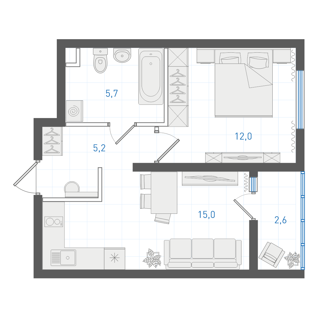 Планировка является типовой. Площади помещений, расположение и размеры венткоробов могут меняться в зависимости от этажа. Уточнение проектных данных в офисе продаж.