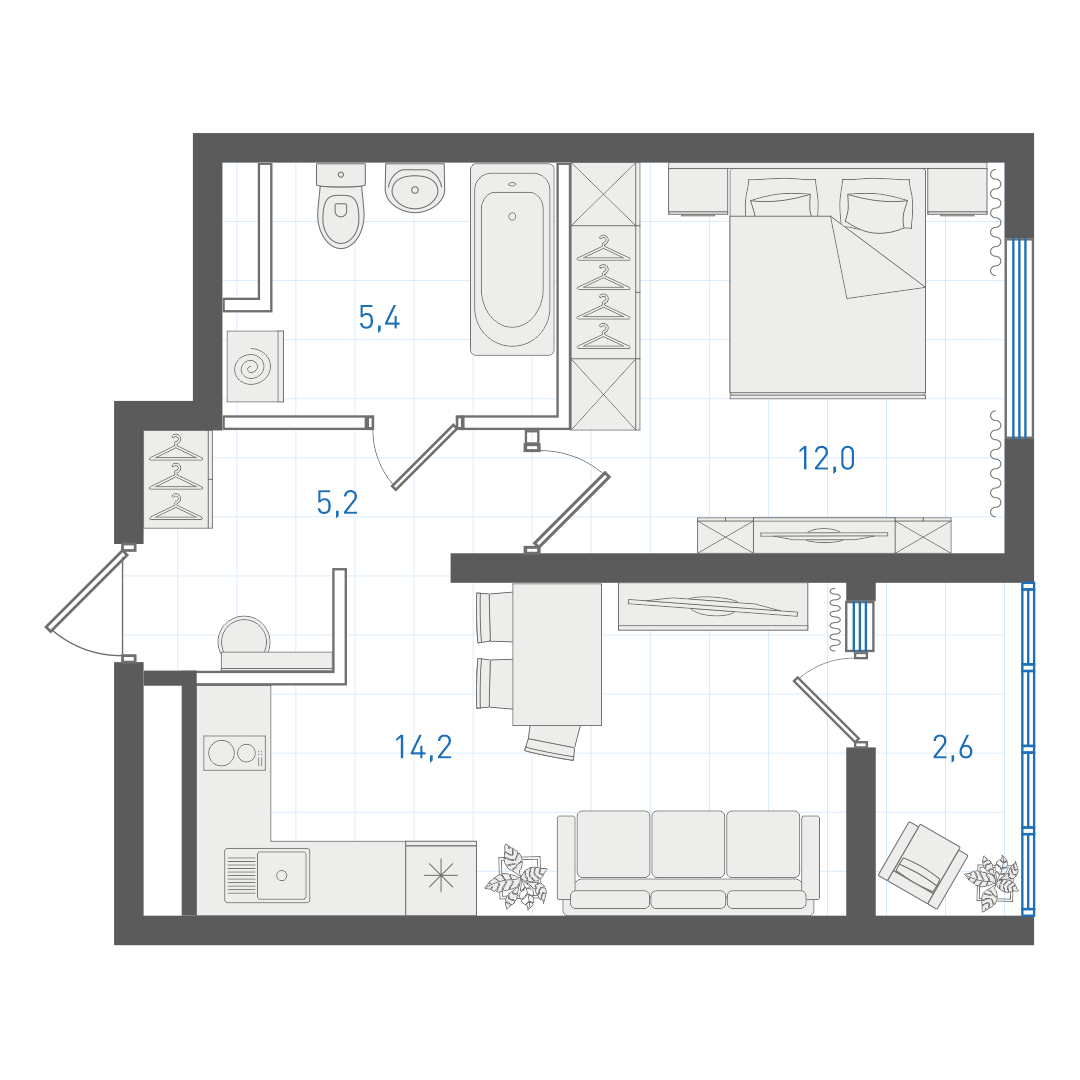 Планировка является типовой. Площади помещений, расположение и размеры венткоробов могут меняться в зависимости от этажа. Уточнение проектных данных в офисе продаж.