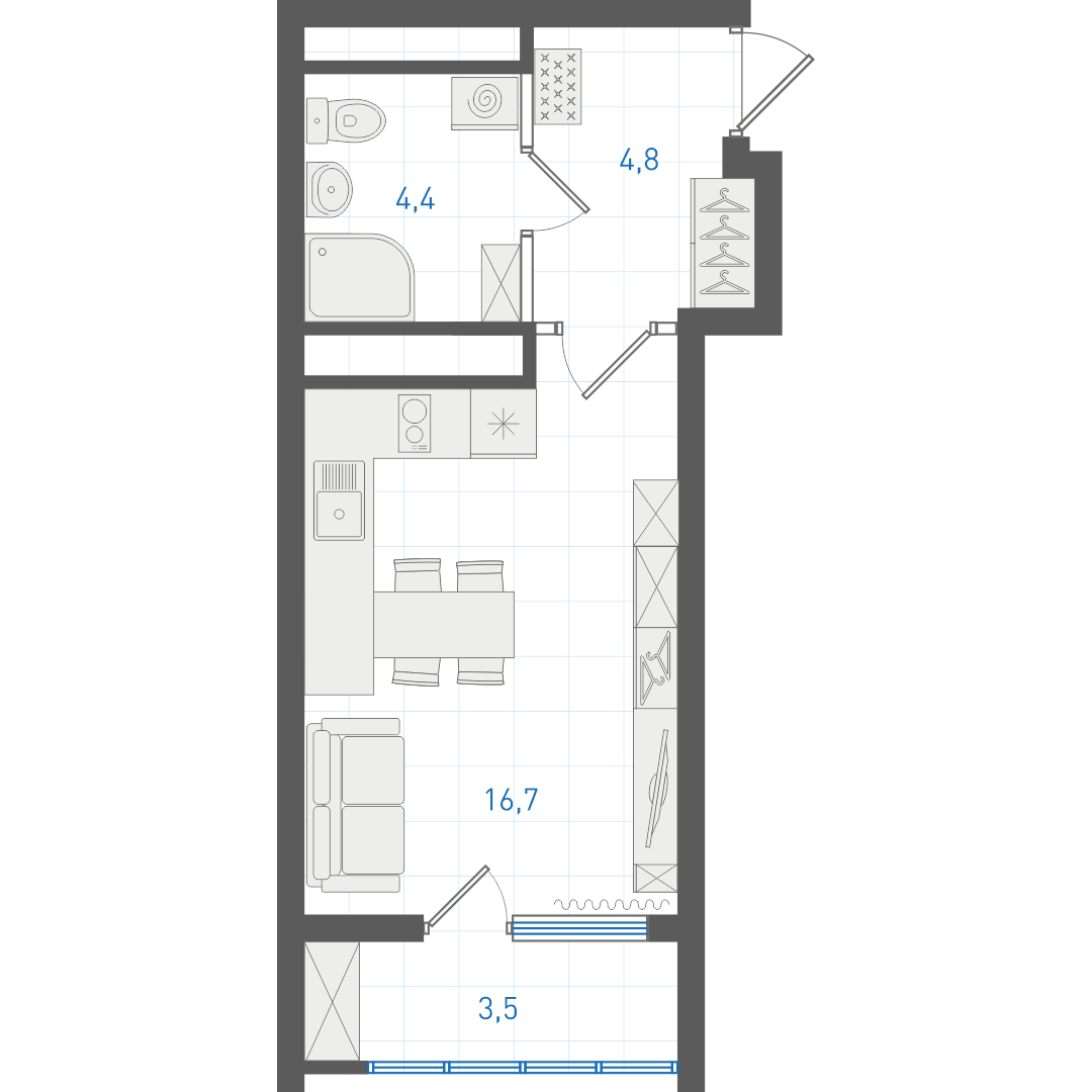 Высота потолка 2.7 метра