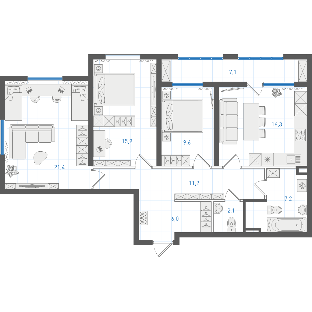 Площадь указана по проектным данным, после замеров БТИ она будет отличаться.